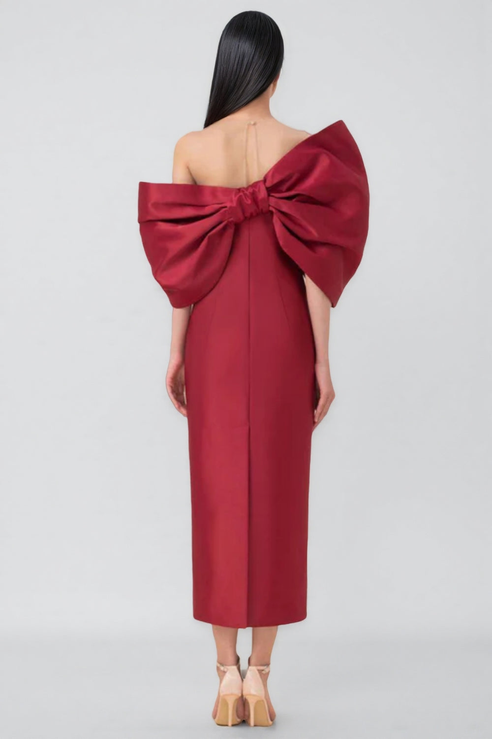 The Divia Strapless 3D Bow Maxi Dress-Burgundy is an exquisite piece. A masterpiece of contemporary design. this gown is meticulously crafted to accentuate the beauty and sophistication of the wearer. With a wide bow at the back. it is a testament to the art of tailoring. The ruffles of the bow and the gorgeous size of the dress add to the overall all-encompassing beauty. making it stand out at any formal gathering.