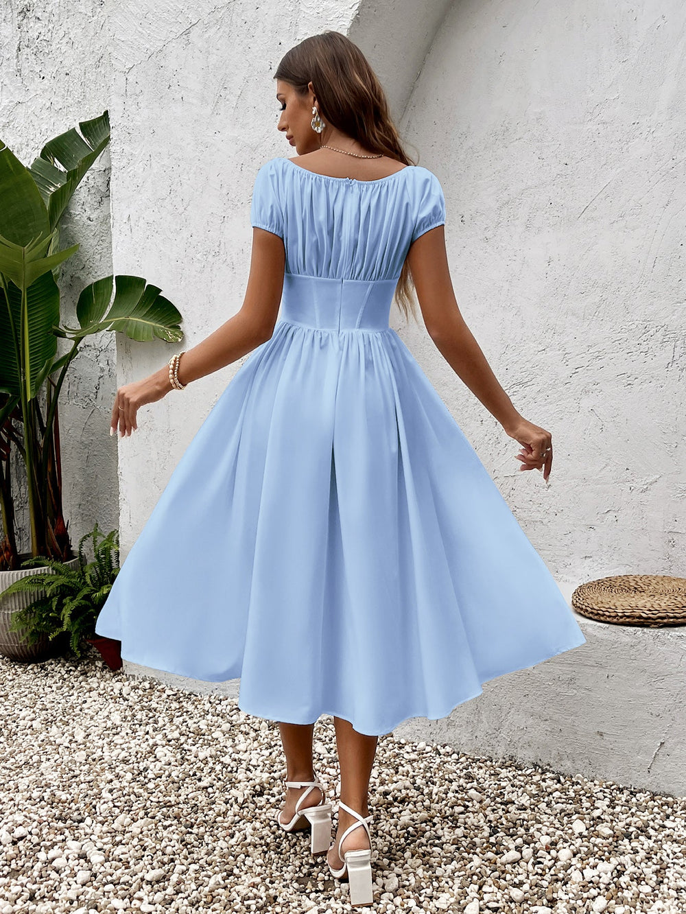 The Bellke Green Pleated Strapless Maxi Dress is a vibrant and elegant choice. featuring a soft green hue and a flowing silhouette. The strapless design highlights the shoulders. while the pleated detailing adds texture and movement. Perfect for summer events. this dress exudes a...