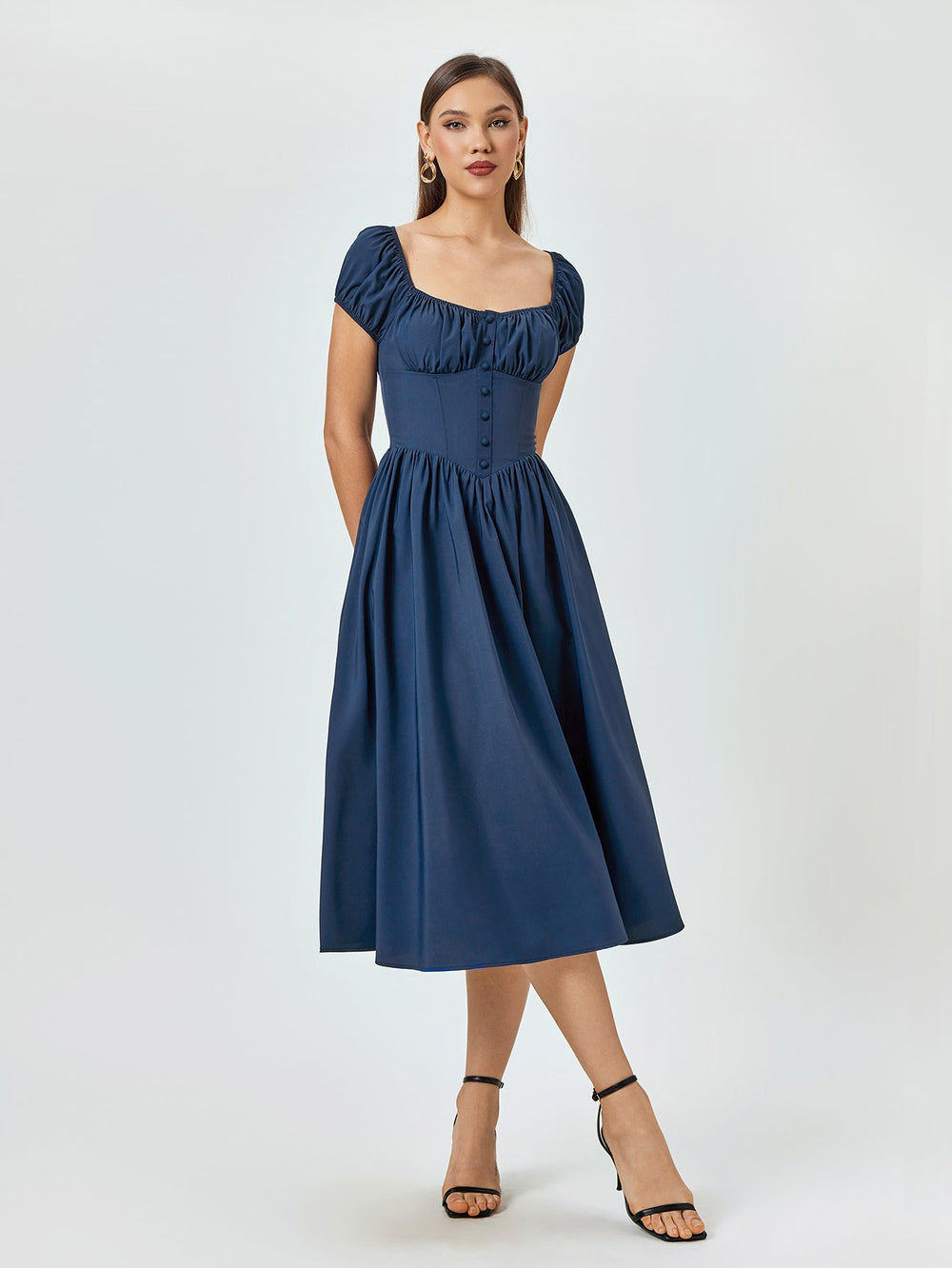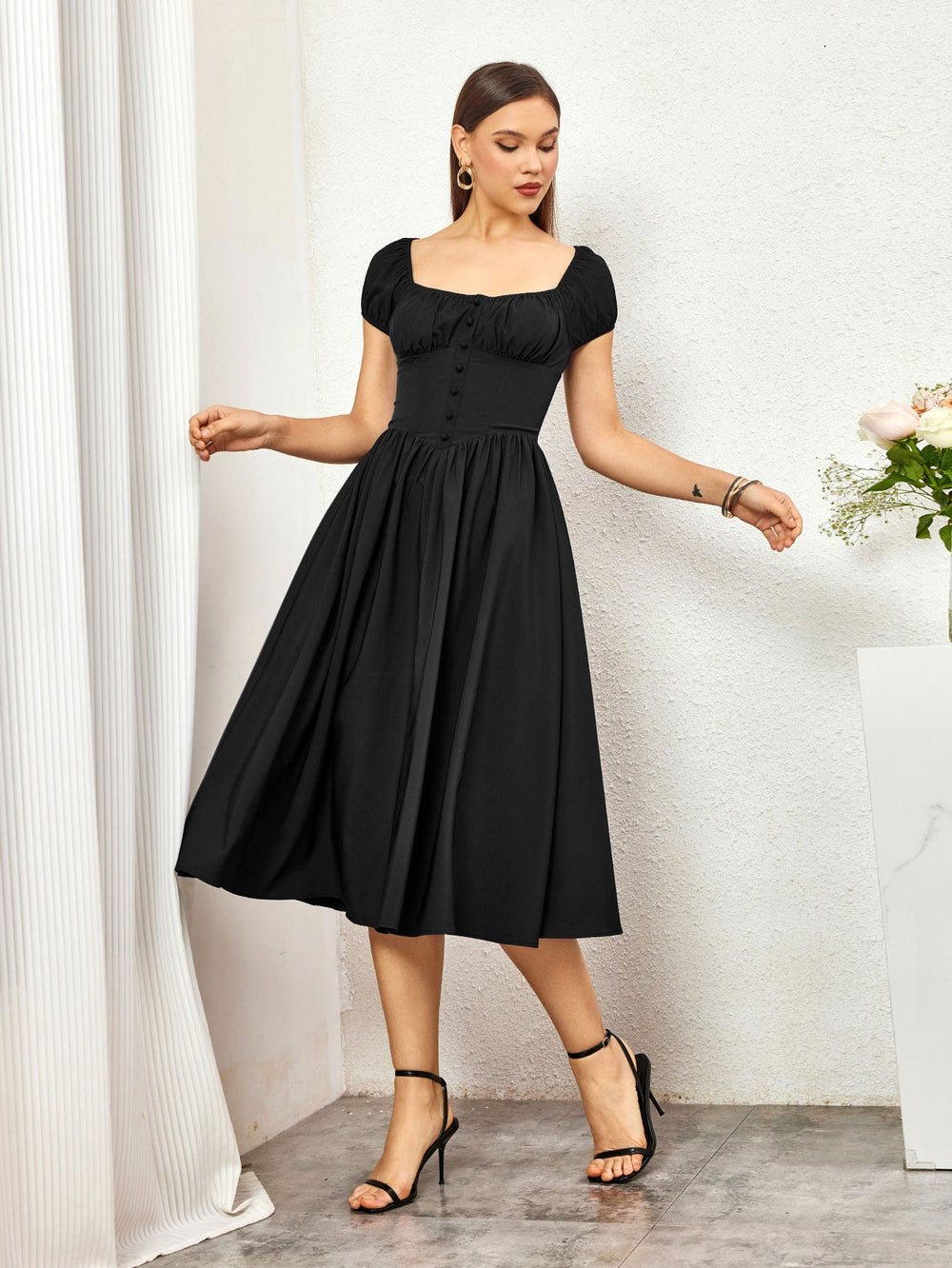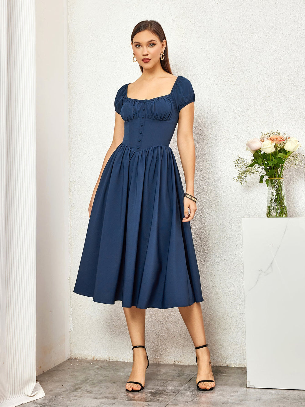 The Abner Strapless Flower Midi Dress is a captivating piece that radiates glamour and sophistication. This striking red dress features a strapless sweetheart neckline. beautifully enhancing the wearer's shoulders and décolletage. Adorned with intricate 3D floral appliqués made from delicate lace. the dress adds...