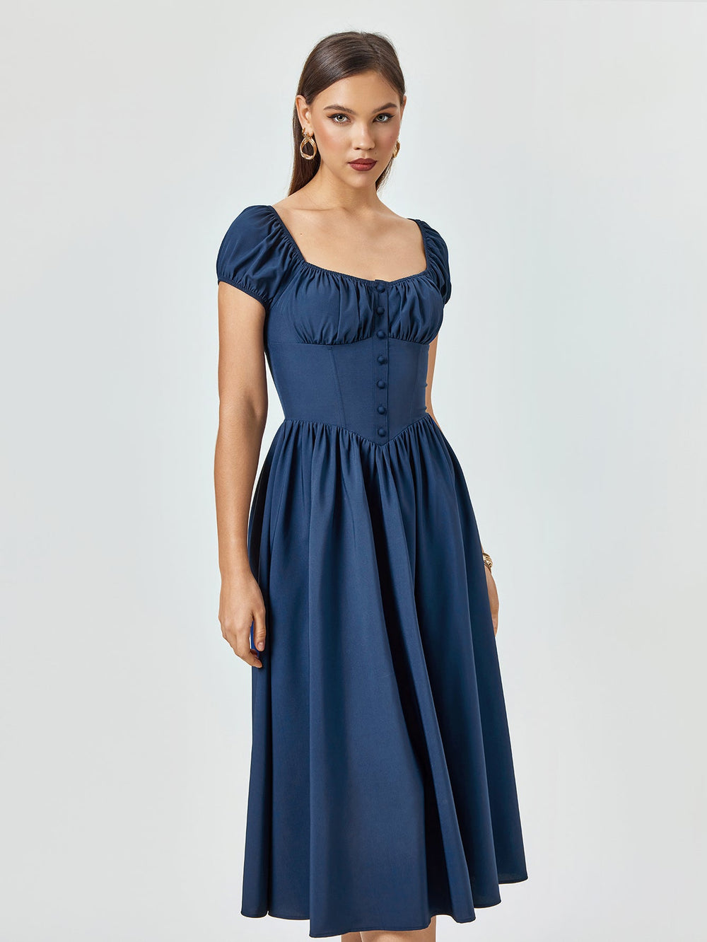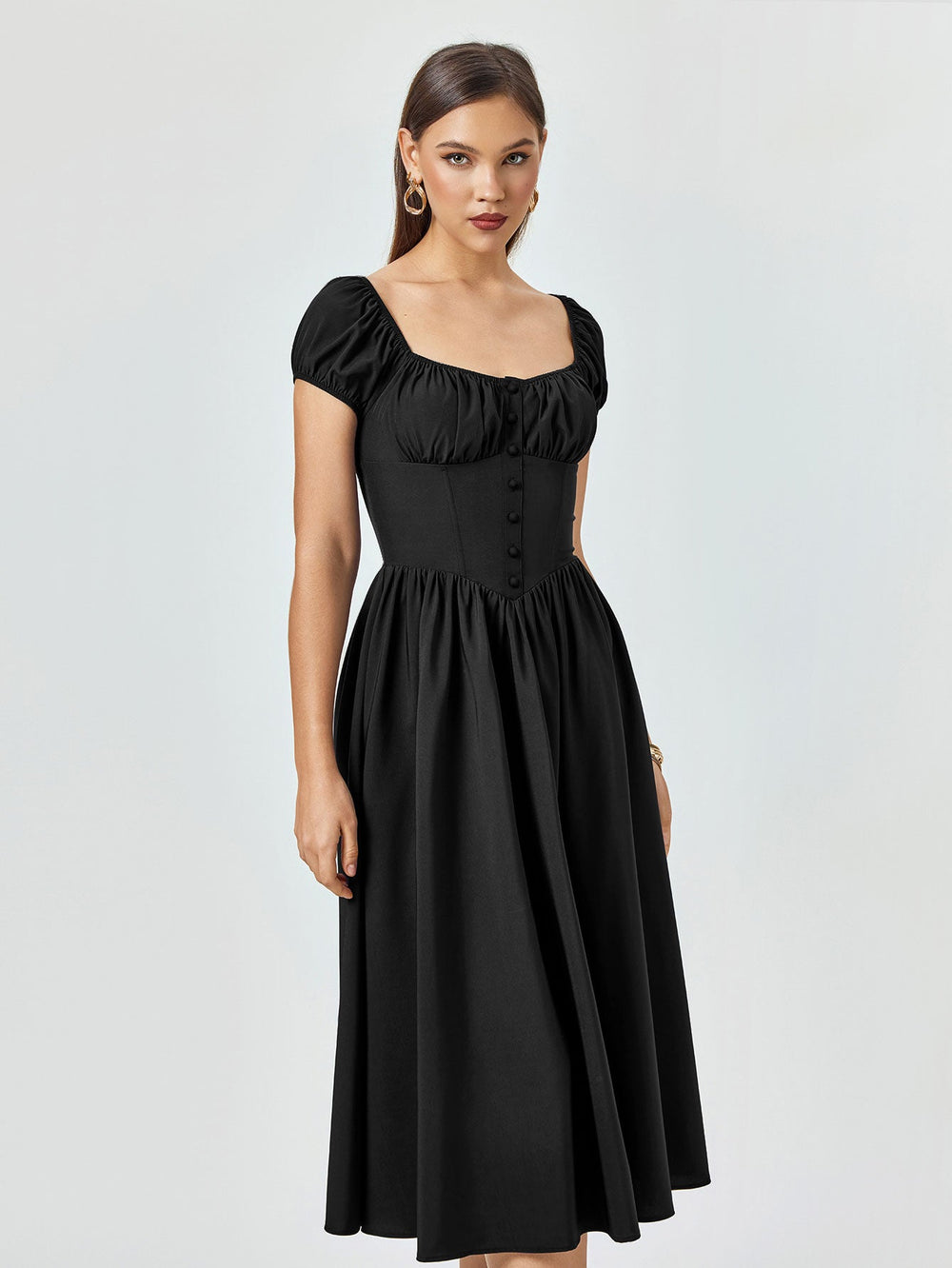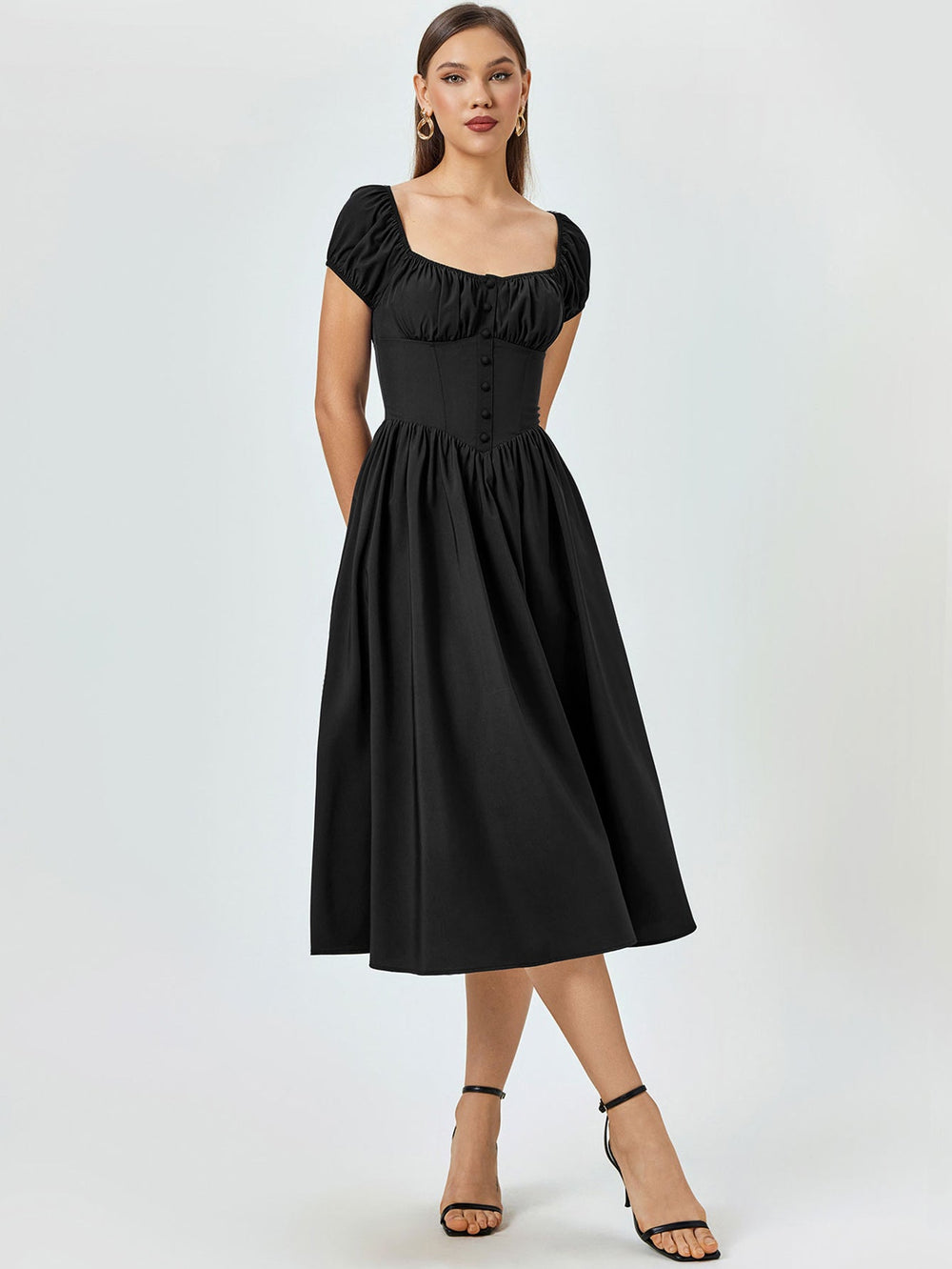 The Abner Strapless Flower Midi Dress is a captivating piece that radiates glamour and sophistication. This striking red dress features a strapless sweetheart neckline. beautifully enhancing the wearer's shoulders and décolletage. Adorned with intricate 3D floral appliqués made from delicate lace. the dress adds...