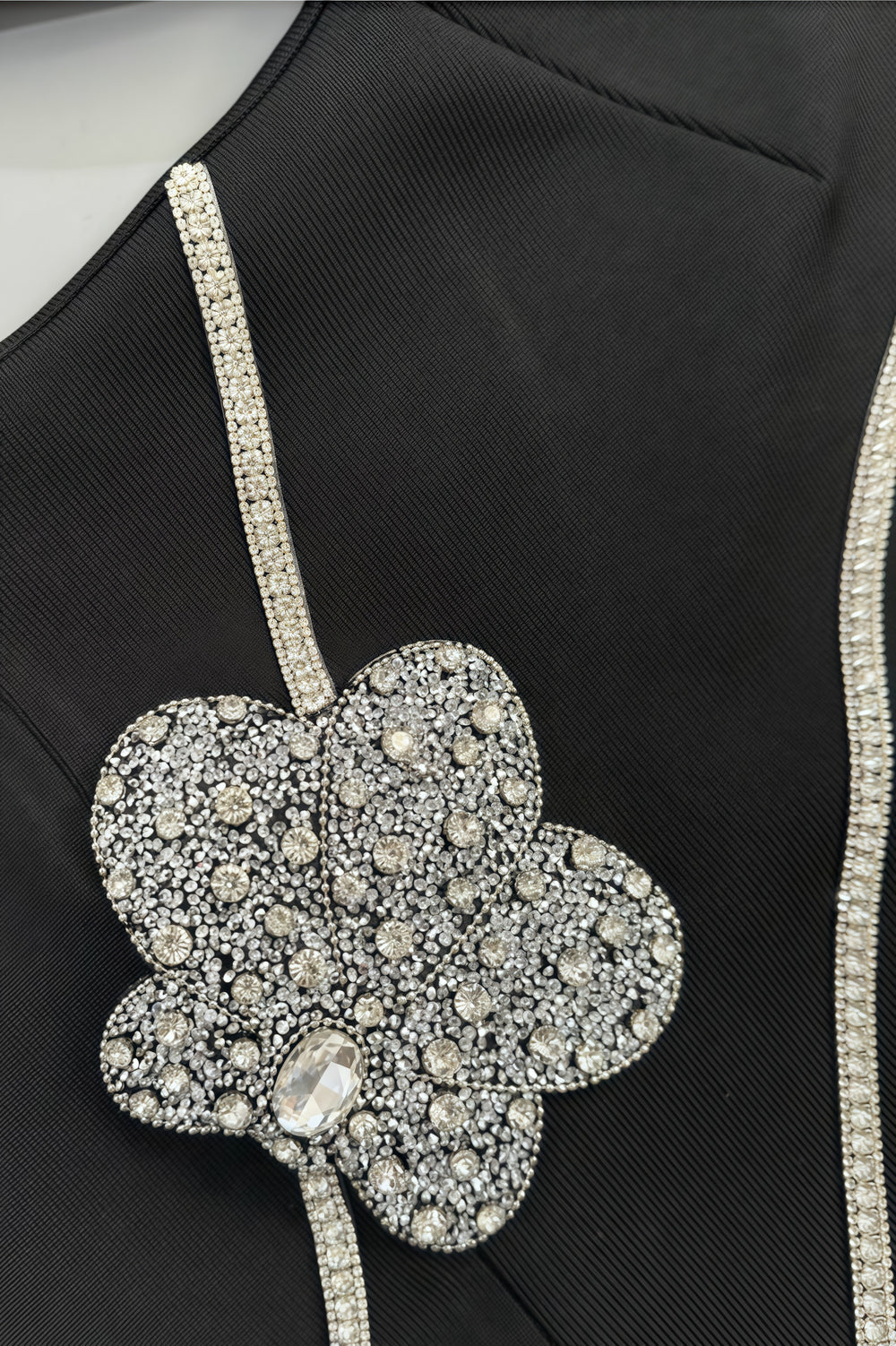 The Senne Rhinestone Long Sleeve Floral Maxi Dress is an exquisite piece of fashion designed for those who appreciate elegance and sophistication. This black maxi dress features long sleeves that add a touch of modesty while maintaining a sleek appearance. The most striking feature is the intricate floral design made of rhinestones on the upper left side of the bodice. which adds a dazzling effect to the overall look.